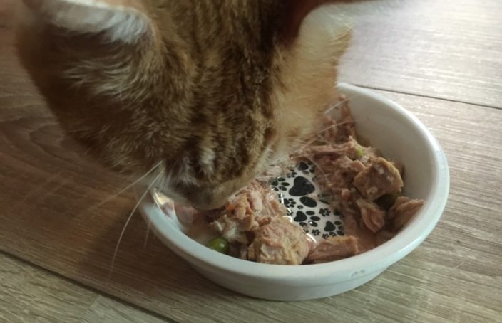 Erst danach fraß er ein paar Häppchen vom Thunfisch und ließ einen kleinen Rest gesättigt stehen. Je nachdem wie lange die letzte Hauptmahlzeit zurückliegt, dürften aber nur die wenigsten Katzen mit den winzigen 70g Schwierigkeiten bekommen. Weggeschmissen wird bei uns jedenfalls nichts, dafür sorgt entweder Muffin oder in letzter Instanz Marley. 😉